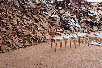 However, these wastes have still unique value such as colors, texture, durability and smooth curve which invite people to sit on.