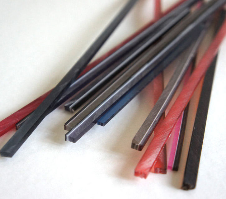 細い棒状のプラスティック片が端材として眼鏡フレームの生産過程で生まれます。そしてこれらの端材はその素材独特の価値を残しつつも、一般的には燃えるゴミとして廃棄されます。
